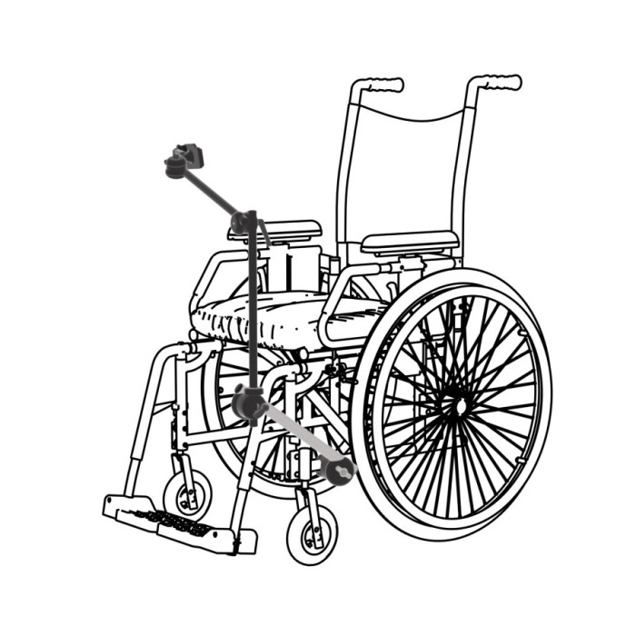 Ref: BJ-133311Soporte para silla de ruedas ligero y versátil que permite llevar el dispositivo fijado con seguridad en la silla de ruedas.