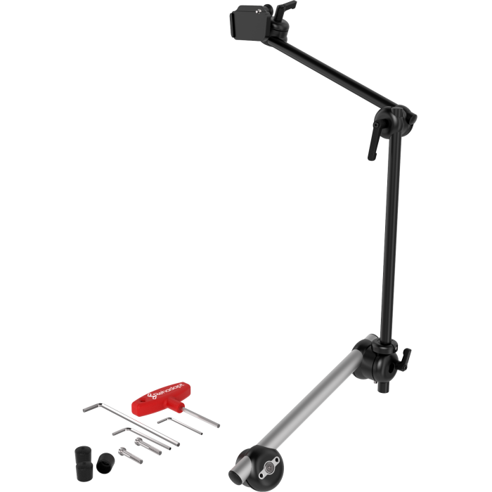 Consta de tubos de 300 x 400 x 300 mm con articulaciones QuickShift para facilitar el posicionamiento y fijación giratoria que permite retirar la parte superior sin perder la posición. Sus articulaciones QuickShift en las uniones de los tubos te permitirán un ajuste total de 360° en todas las direcciones. Además su sistema de fijación UDS te proporcionará una fijación segura de tu dispositivo, en cuestión de segundos.